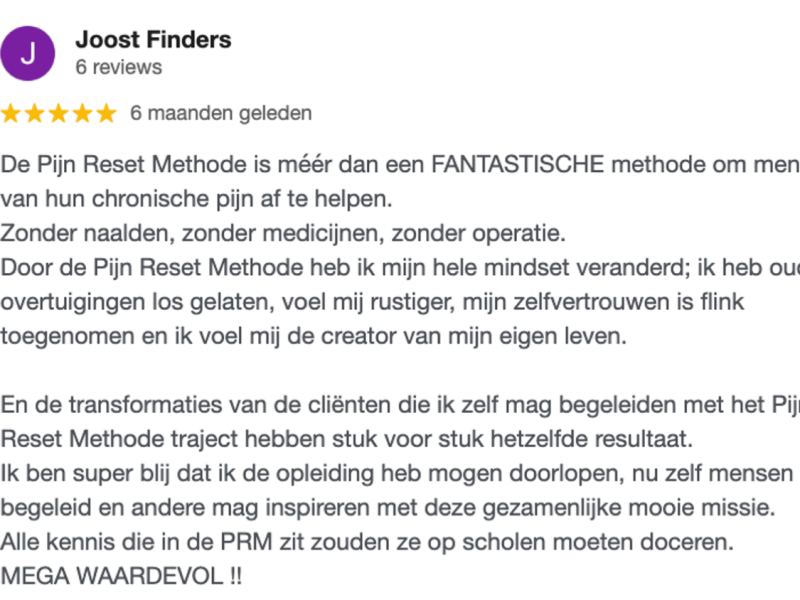 NA INDIVIDUEEL PIJN RESET METHODE TRAJECT